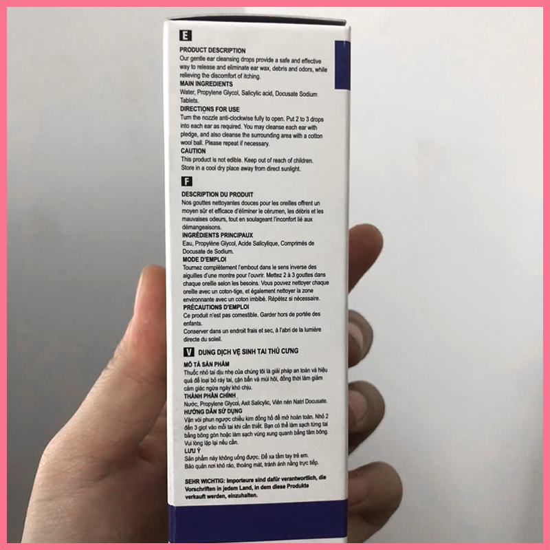 - Natri Docusate – hỗ trợ phân rã ráy tai, giúp dễ dàng loại bỏ khi vệ sinh.