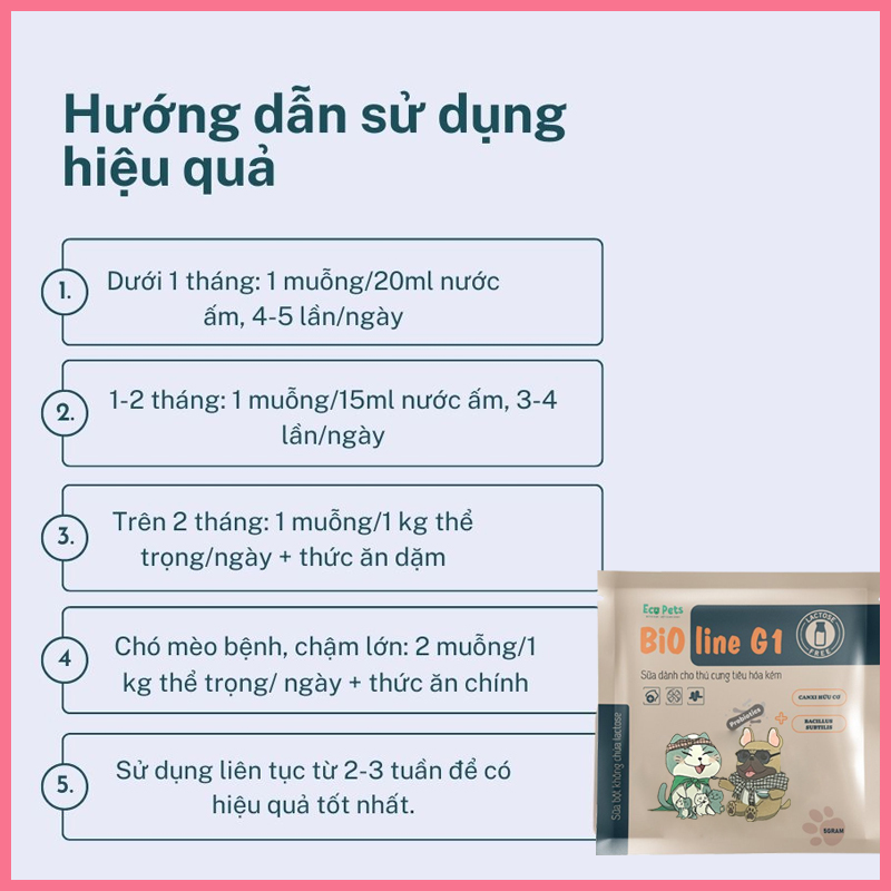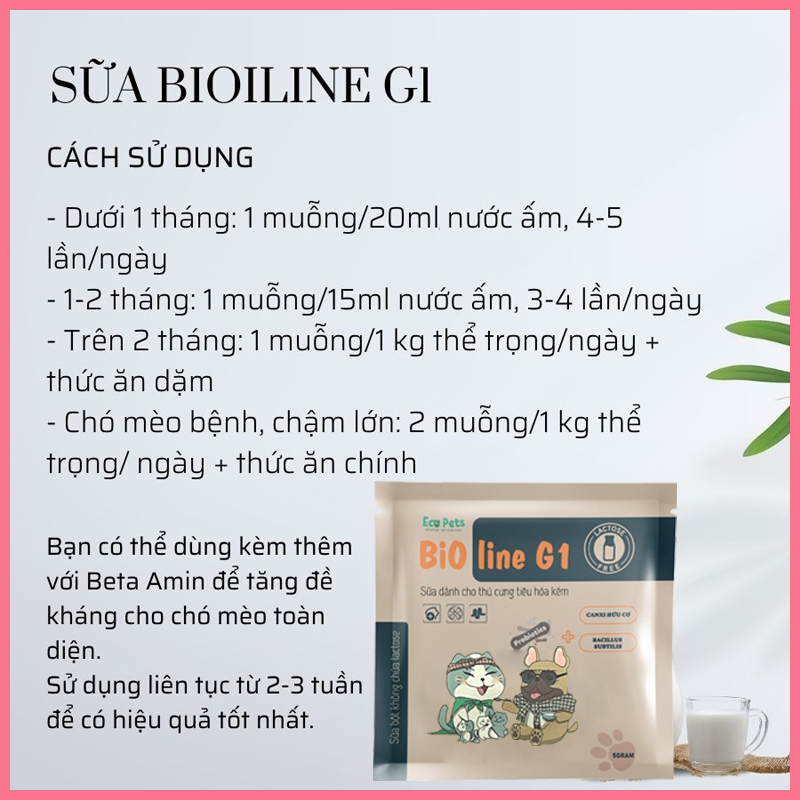 Công dụng của sữa bột chó mèo Bioline G1 Ecopets